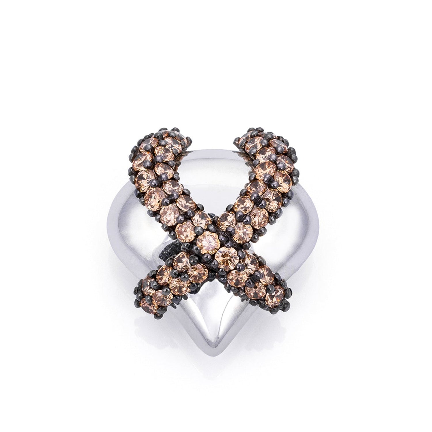 Cognac Silver Heart Charm