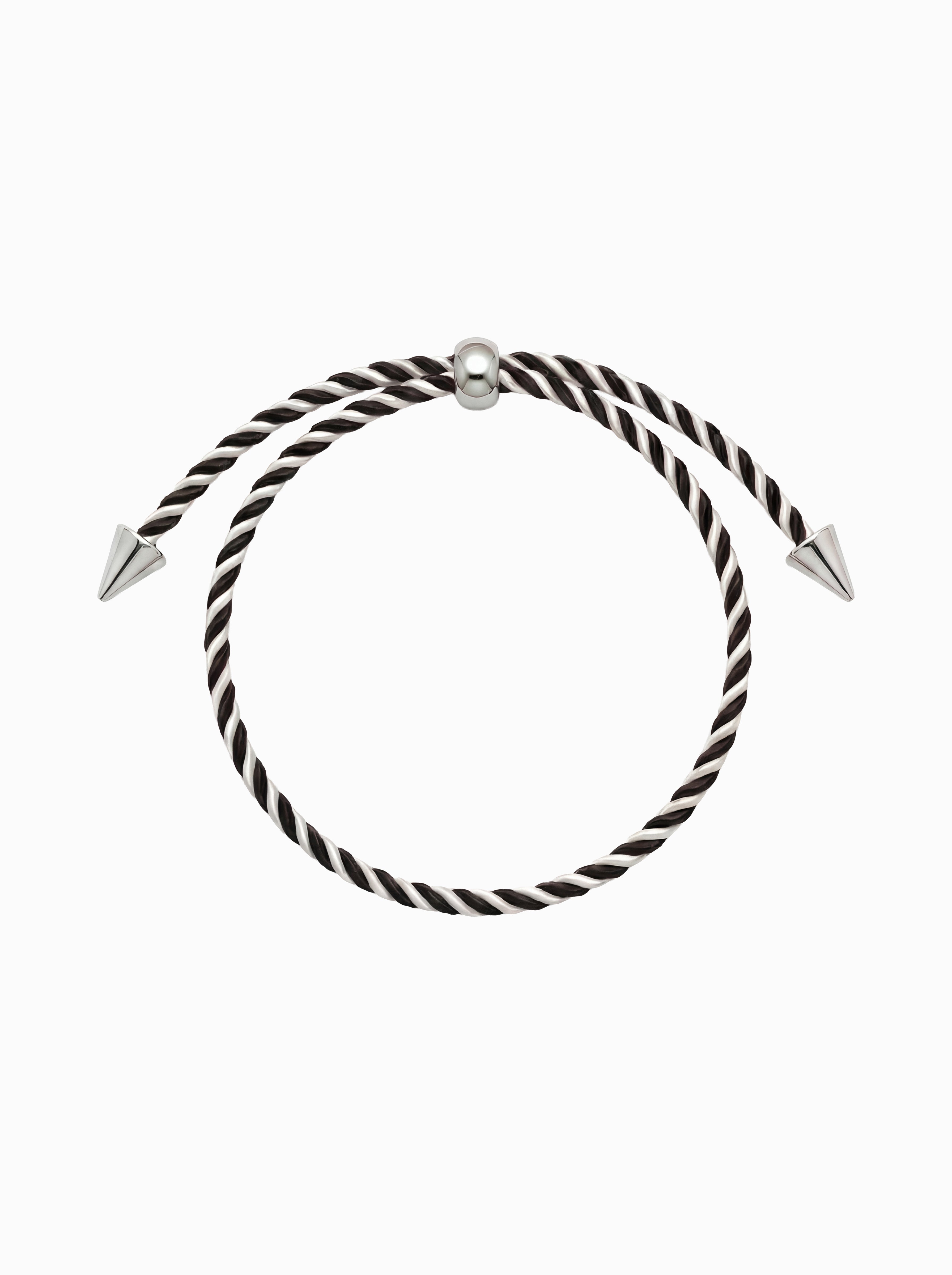 Designed as a versatile base, the BYTELLI cord features iconic triangular pyramid silver ends and is compatible with interchangeable charms and pendants. It can be worn as a necklace or wrapped as a bracelet, allowing for effortless personalization. Engraving options are available, enabling each piece to carry a personal message or symbol. A modular design created to adapt to your style and the story you choose to tell.