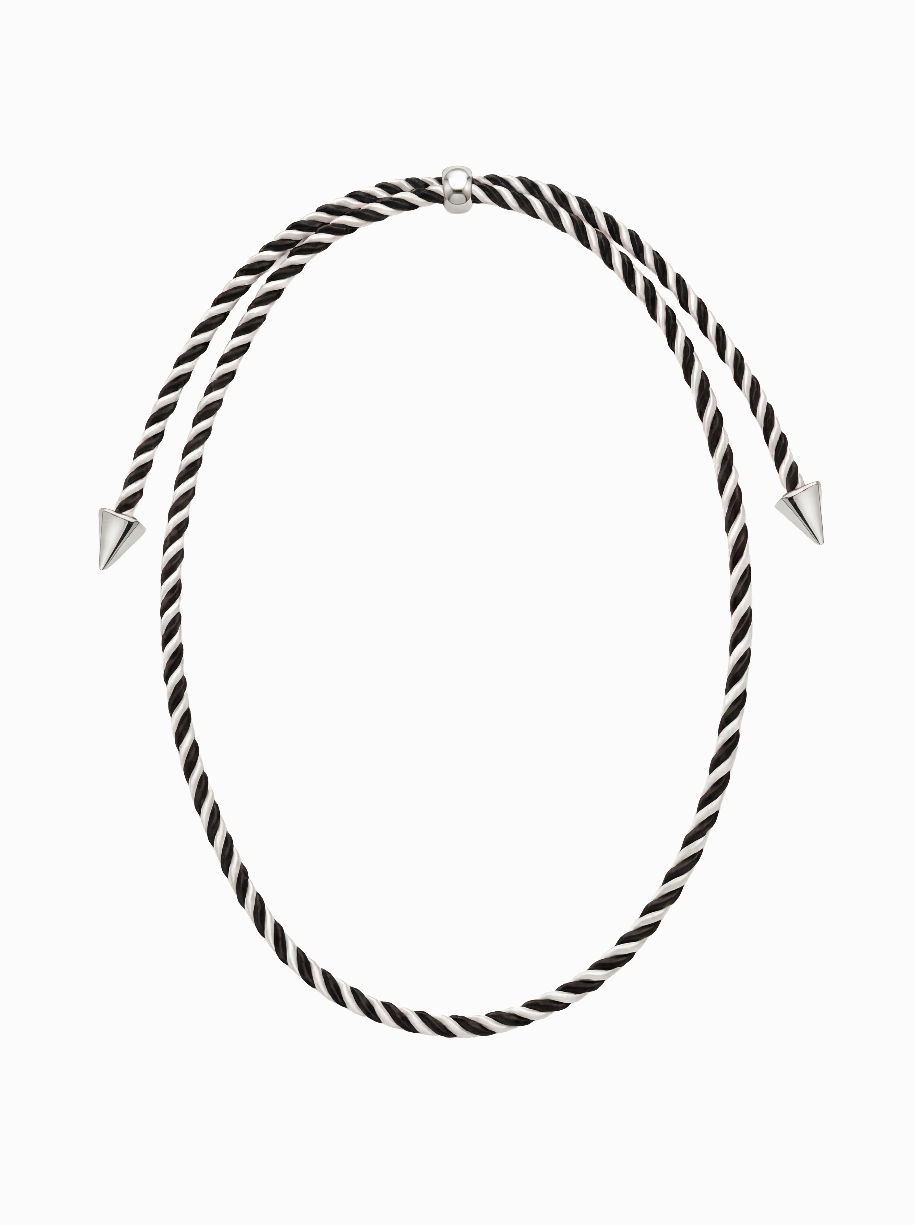 Designed as a versatile base, the BYTELLI cord features iconic triangular pyramid silver ends and is compatible with interchangeable charms and pendants. It can be worn as a necklace or wrapped as a bracelet, allowing for effortless personalization. Engraving options are available, enabling each piece to carry a personal message or symbol. A modular design created to adapt to your style and the story you choose to tell.
