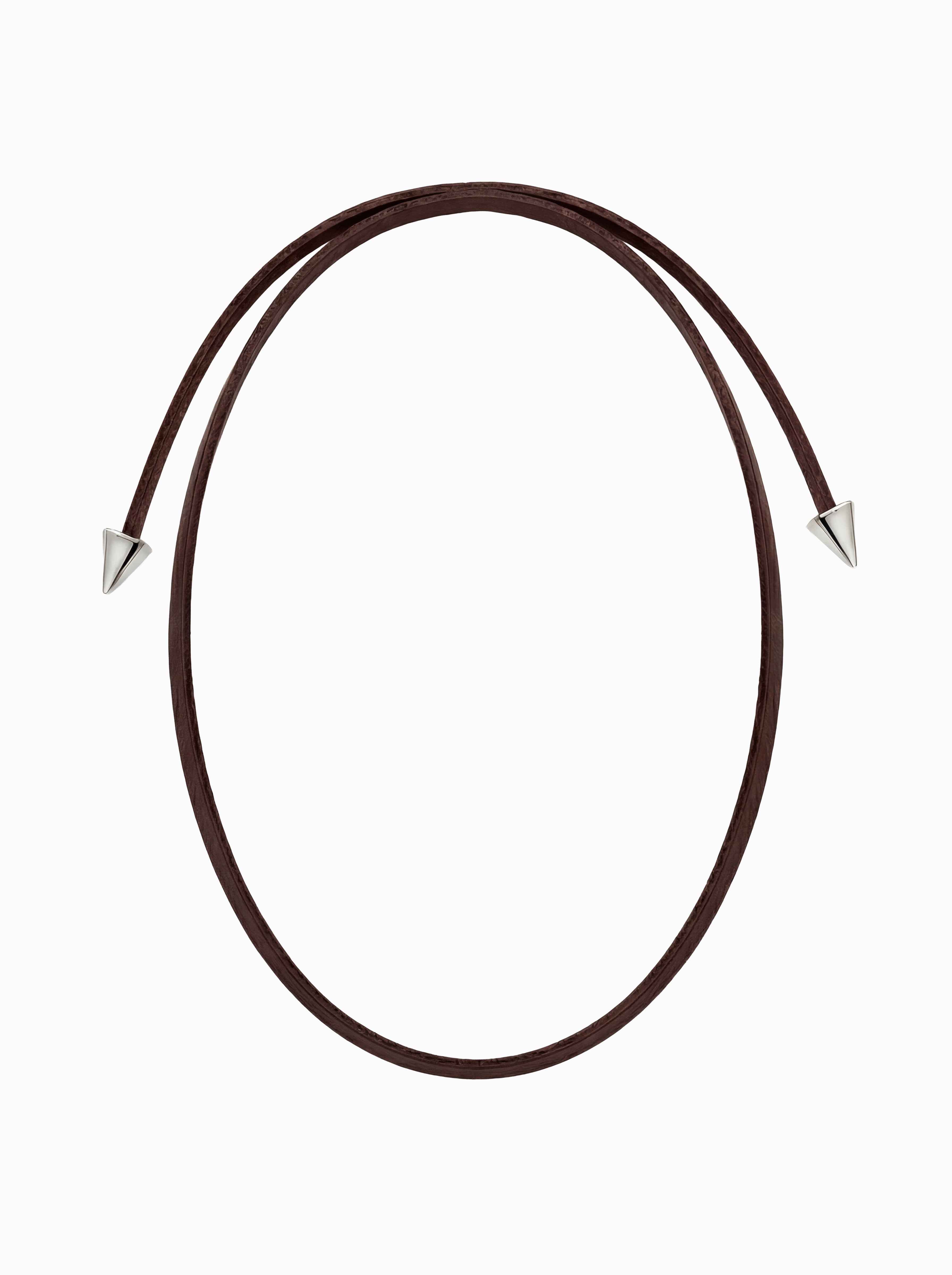 Designed as a versatile base, the BYTELLI cord features iconic triangular pyramid silver ends and is compatible with interchangeable charms and pendants. It can be worn as a necklace or wrapped as a bracelet, allowing for effortless personalization. Engraving options are available, enabling each piece to carry a personal message or symbol. A modular design created to adapt to your style and the story you choose to tell.